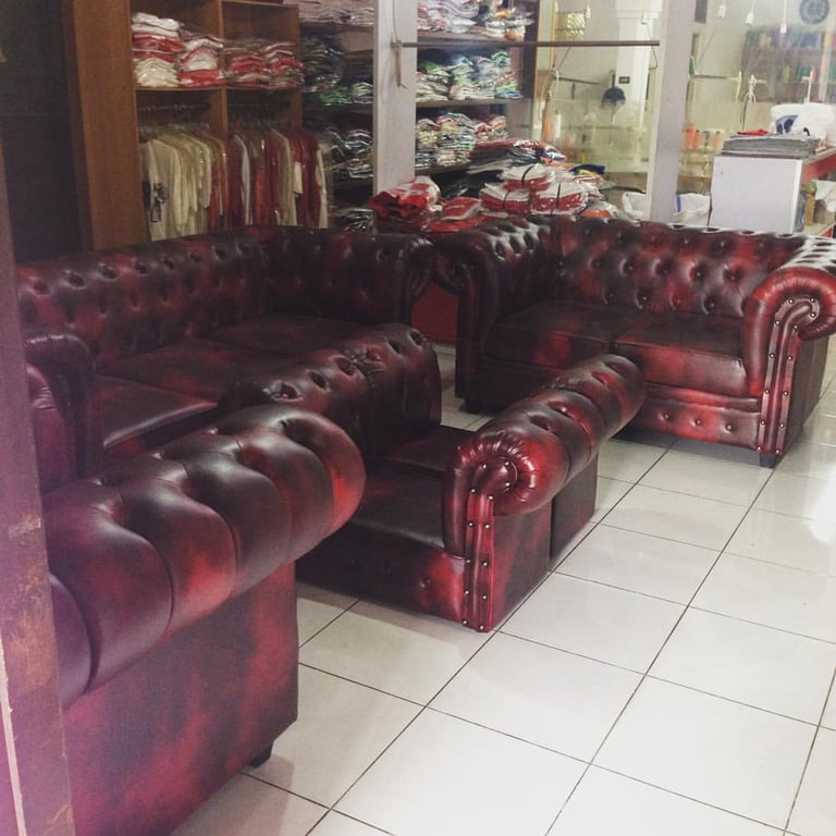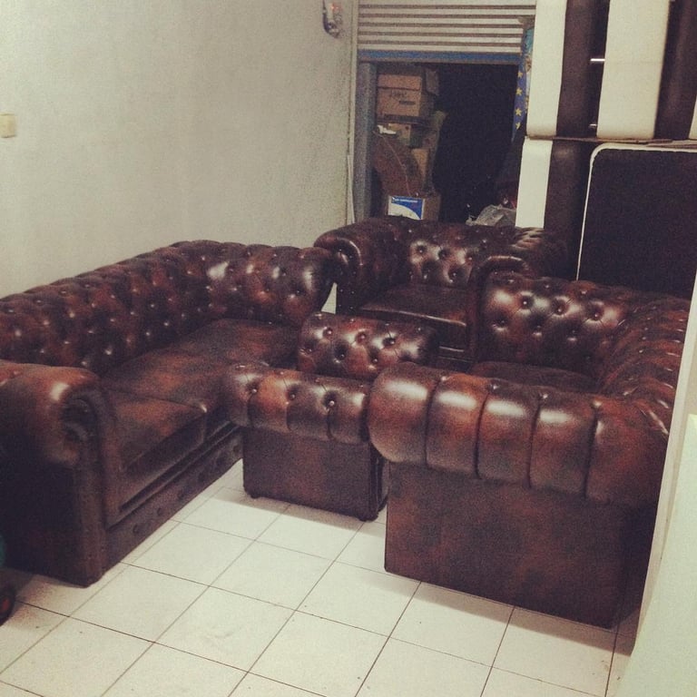 Sofa KJM Jaguar Chesterfield di rumah mereka.